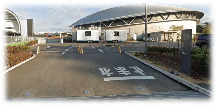 - 下記の写真、千葉公園第三駐車場前の関係者駐車場にお停めください